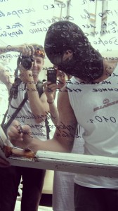 Стекло с обращением пронести на территорию консульства нам не разрешили. Мы правда всё равно вломились и пронесли, но менты из охраны вынесли его назад, сказали что “нельзя в канцелярию со стеклом, оно разбиться может”. Прискорбно, но страх перед битыми стёклами пресследует российских чиновников даже зарубежом.