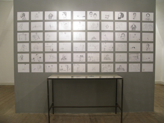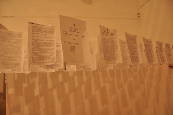 На открытии была выставлена лишь общая информация о делах и ксерокопии с материалов. Рисунки были, но не в качестве самостоятельных арт-объектов, а скорее в качестве документации. Только лишь чёрное и белое, разбавленное парой фотографий из-под полы.