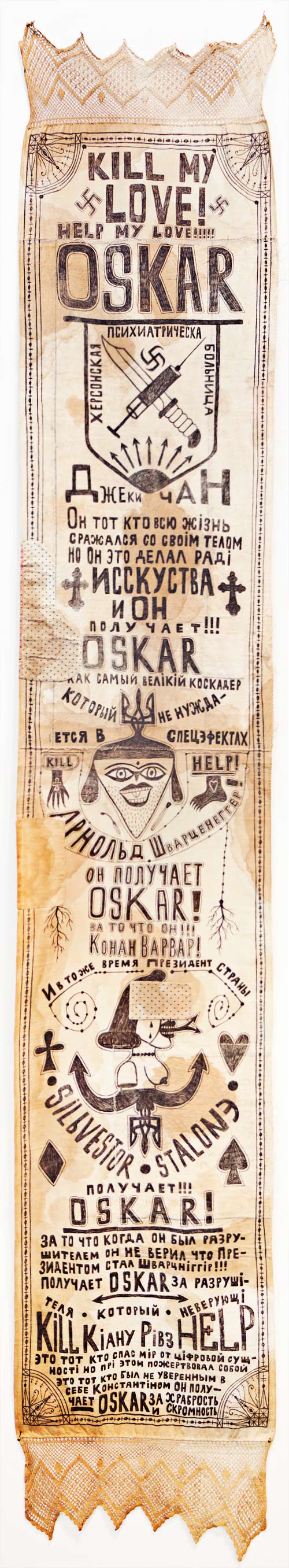 Кстати, мотив свастик и государственной символики в творчестве заключённых (как тюрем так и психлечебниц) – весьма интересная тема для исследования. Не помню писал ли, но простыня которая завешивала нижний ярус моей нары (я спал на верхнем) была украшена большой, с любовью нарисованной свастикой. Читал как-то, что любовь заключённых к свастикам была обусловлена антигосударственной составляющей уголовной культуры, которая вполне логичным образом переросла в антисоветскую. Всё-таки в конце 19-го, начале 20-го века мировоззрение заключённых серьёзно подверглось влиянию со стороны политических заключённых, анархистов в частности, отголоски чувствуются до сих пор.