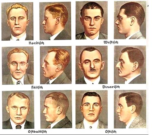 “Дослідження портретів видатних людей показало також, що майже всі вони мали великий, досить вузький ніс та вузьку “аристократичну” руку.. Також до рис представників активних, провідних рас, які є природними носіями світової цивілізації, відносять світле волосся, блу шкіру та голубі очі… Таким расологи вважають Александра Македонського. Вважалось, що ці риси були дуже поширеними серед греків і римлян… а також у персів часів Ахеменідів. Також серед індусів вони виділяли касту брамінів, ка вирізнялася значною кількістю блондинів…”