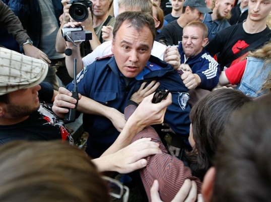 Первая официальная драка с милицией в истории профсоюза “Прямое Действие” (драки с ментами были и раньше, но преимущественно в рамках антизастроечных инициатив). Легенда, о том, что мент со сбитой фуражкой теряет ориентацию в пространстве полностью подтвердилась.