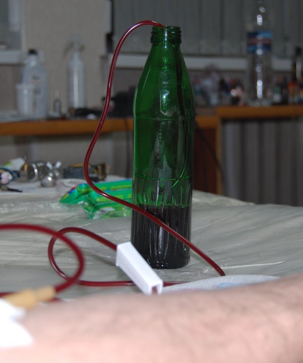 Работа “красная жидкость в зелёной бутылке” (которая представляет из себя зелёную бутылку наполненную моей кровью) посвящена заключённым. Фуко в книге “Надзирать и карать” отметил, что в 18-19-ом веке в Европе случился перелом в практике уголовного наказания. Наказание перестало быть публичным, исчезли пытки, призванные устрашать. Насилие над телом сохраняется в пенитенциарной системе, но оно потеряло свою символическую показательную составляющую, оставив лишь утилитарную. Боль стала скрытой и незаметной для стороннего наблюдателя. Глядя на зелёную бутылку, наполненную кровью, мы знаем, что там кровь, но мы не можем рассмотреть это доподлинно. Поэтому она не вызывает тех же чувств, что кровь бьющая из открытой раны.