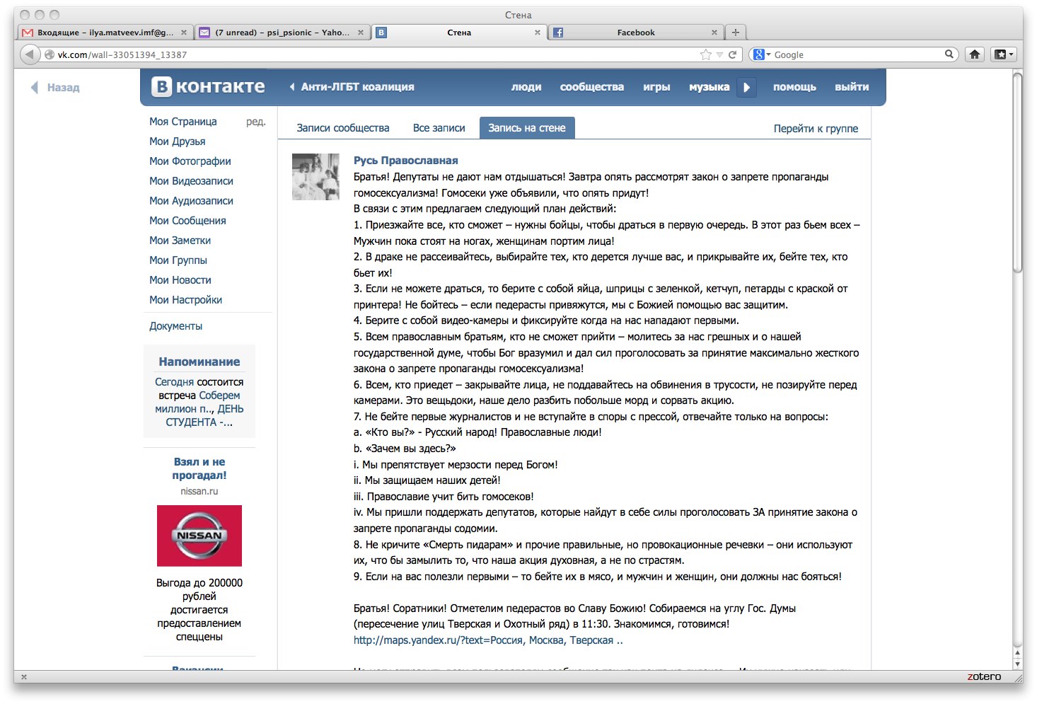 Завтра в Москве клерикально-фашистские гниды планируют массированные нападения на ЛГБТ акцию.
