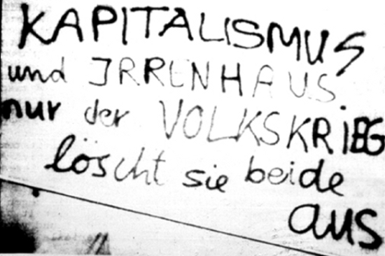 Второе направление – работа с собственными психическими  проблемами активистов. Нетрадиционные способы терапии (в частности, Aktionsanalyse, психоделическая терапия). Изучение своих “болезней” и использование их в революционных целях.