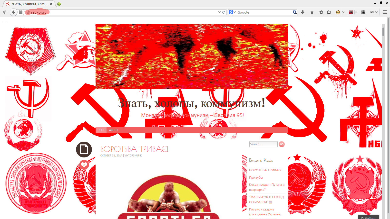 Взломан сайт Рабкор. Взломан, если что не мной. Правда не мной, я бы не стал отрицать, если бы это была моя заслуга, но тут мы имеем дело с неизвестным шутником, чьё чувство юмора, впрочем, замечательно гармонирует с моим.