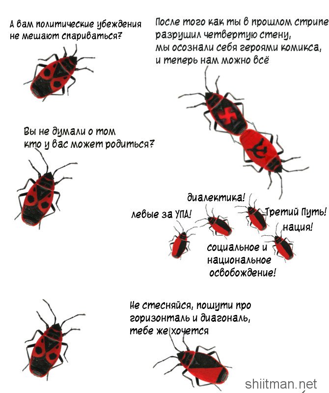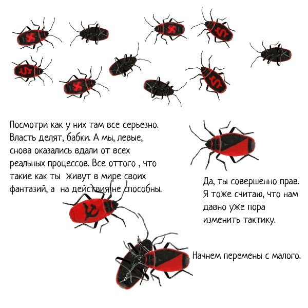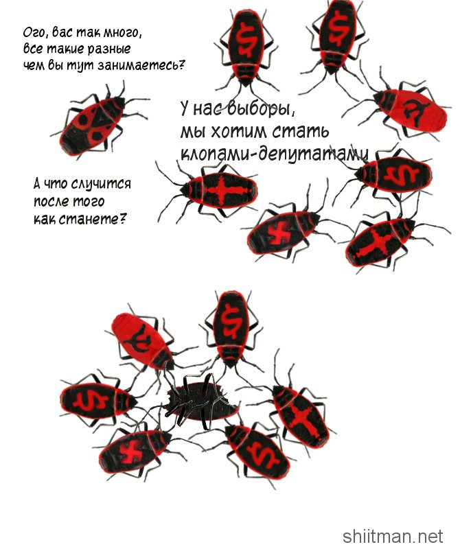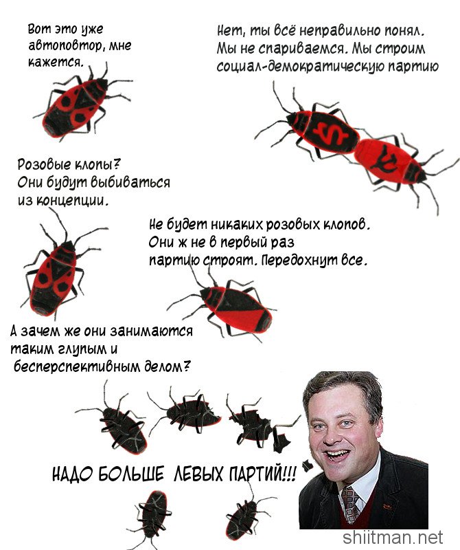 Тем временем, политический спектр у клопов расширяется. Кто-то левеет, кто-то правеет, кто-то ухитряется делать и то, и другое одновременно.